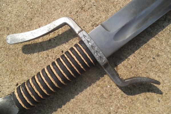 Die Gesamtlänge 868 mm, die Klingenlänge 690 mm , die Schutzlänge 180 mm, Klingenbreite beim Schutz 42 mm, das Gewicht 1693 g. Klingenmaterial: Federstahl 14260